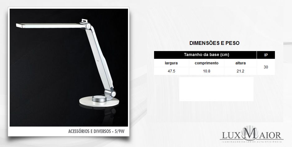 Texto da luminária de mesa LED – 5 a 9w