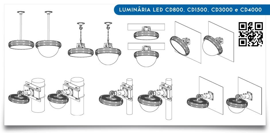 Clique para visualizar detalhes de cada modelo de Luminária LED CD800, CD1500, CD3000, CD4000 Industrial Pública.