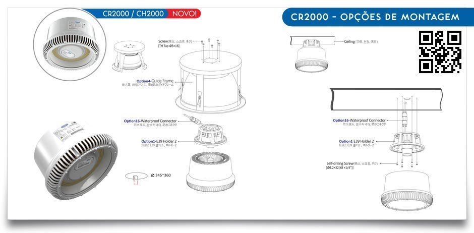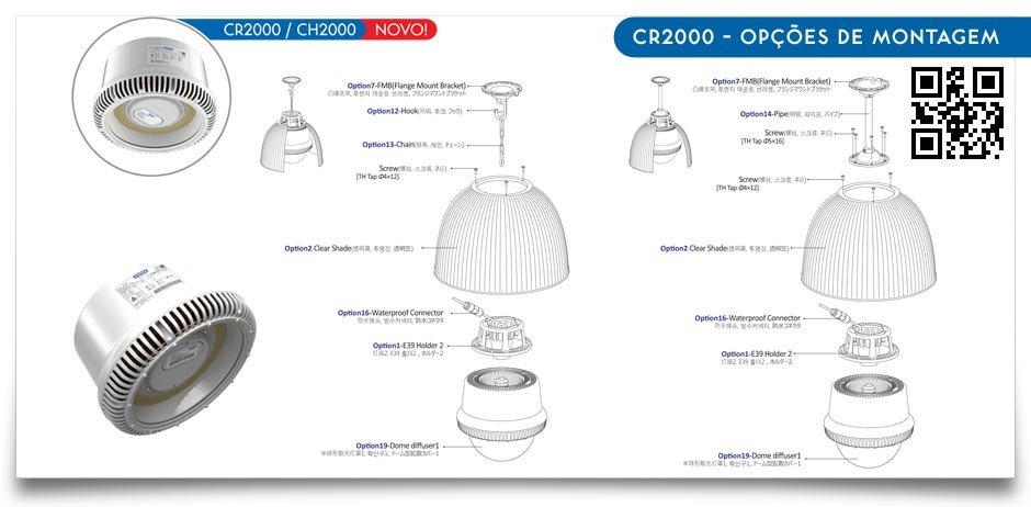 Clique para visualizar detalhes de cada modelo de Luminária LED CR2000/CH2000 Industrial, Pública, Estacionamentos.