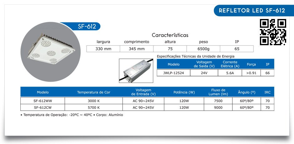 Vantagens na Refletor LED SF-612: